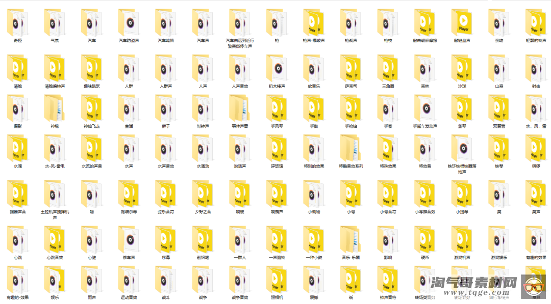 今天主要分享一些这些MG视频制作所需要的音频文件,可以说是视频设计师的必备素材(包括视频中的各种音效 闪白 转场 滑落 跌打 动物 乐器 鼓掌 各种环境音效等等。)一共5G大小,4万多首。MG动画制作必备音效,当然了你也可以发挥你的创造力用于其他影视制作音效也是可以的。
