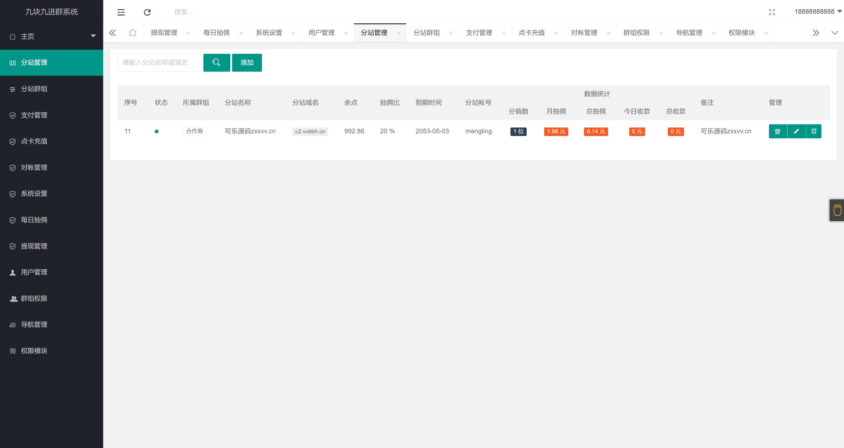 分站的主要功能是管理,在做项目的时候需要通过分销会员进行内容创建,管理内容,非常灵活。源码开源可修改。源码亲测有效,可联系站长看演示
