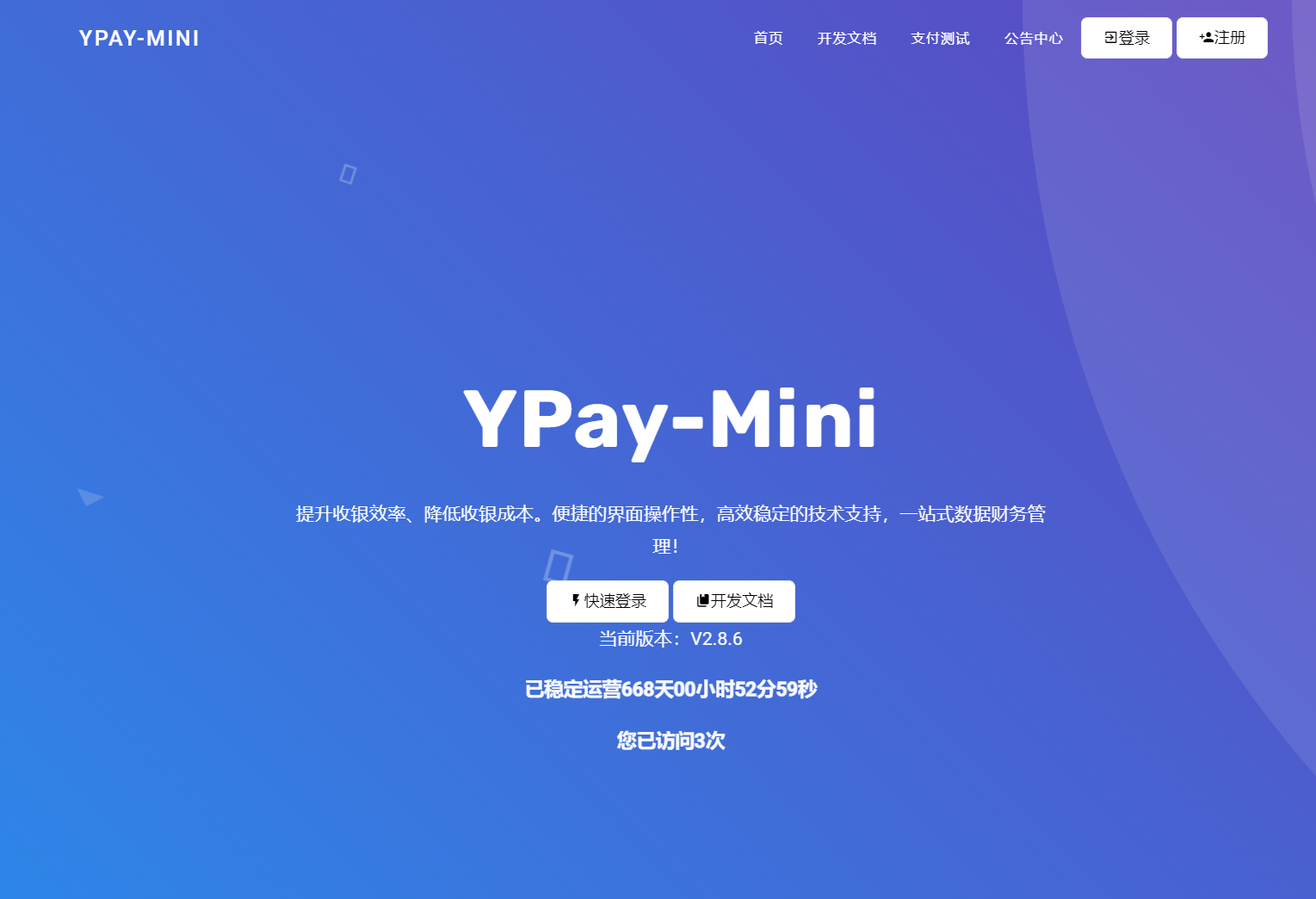 YPay–V7–是专为个人站长打造的聚合免签系统,拥有卓越的性能和丰富的功能。采用全新轻量化的界面UI,让您可以更加方便快捷地解决知识付费和运营赞助的难题。同时,它基于高性能的ThinkPHP 6.1.2 + Layui + PearAdmin架构,提供实时监控和管理,让您随时随地掌握系统运营情况。