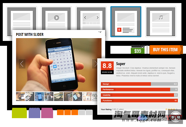 评论块具有模式格式,可以类似于带有商品框和时间计数(可选)的发布后评论和产品评论。每个评论帖子还具有内置的用户评分系统